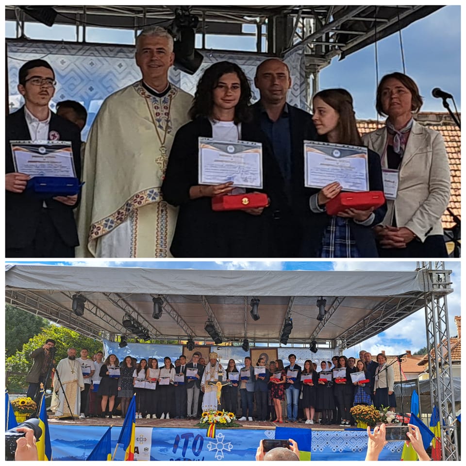 Tinerii făgărășeni au fost foarte încântați să o trimită pe scenă din rândurile lor pe Lavinia Șeicărescu, premiată, împreună cu profesorul ei, Remus Mogoș.