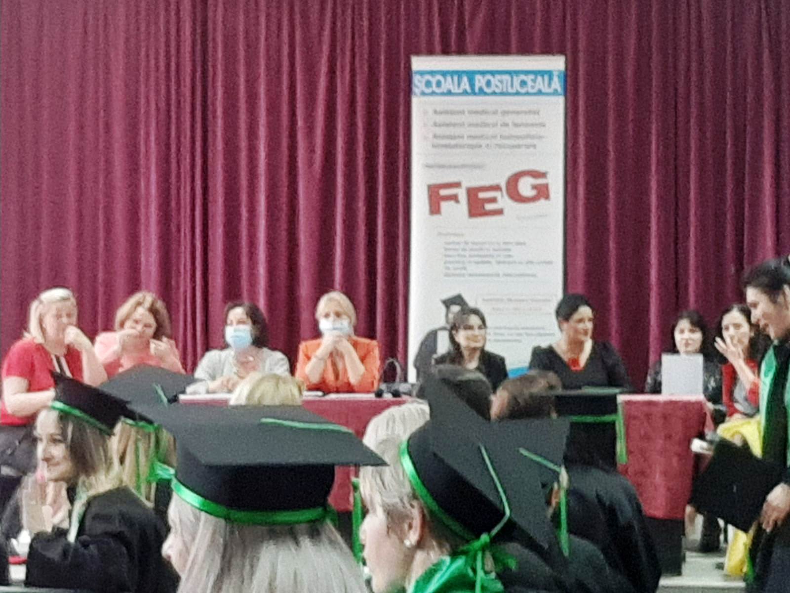 Școala postliceală FEG Education Făgăraș a marcat săptămâna trecută o premieră în existența sa: festivitatea de absolvire pentru prima promoție de cursanți. Tineri absolvenți de liceu și adulți aflați deja în câmpul muncii, toți au îmbrăcat roba de absolvire, bucuroși că au acumulat informații utile, dar și încrezători că le vor putea folosi cât mai mult de acum înainte, atât în România cât și în țări Uniunea Europeană.