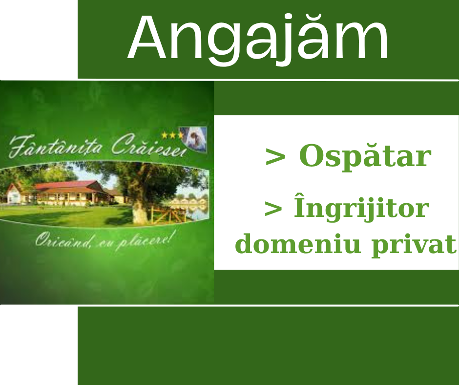 Restaurantul Fântâniţa Crăiesei (Lacurile Beclean) angajează: – Ospătar și – Îngrijitor domeniu privat. Se asigură transportul pe traseul Făgăraş – Lacurile Beclean. Pentru mai multe informaţii sunaţi la 0720.33.99.33