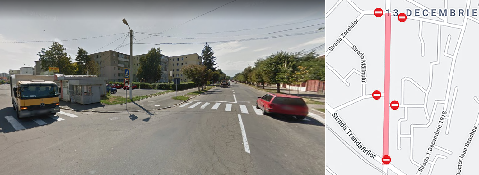 Traficul rutier va fi interzis pe strada 13 Decembrie, de la intersecția cu str. Trandafirilor (pasarelă), până la intersecția cu strada Narciselor (Transilvania).
