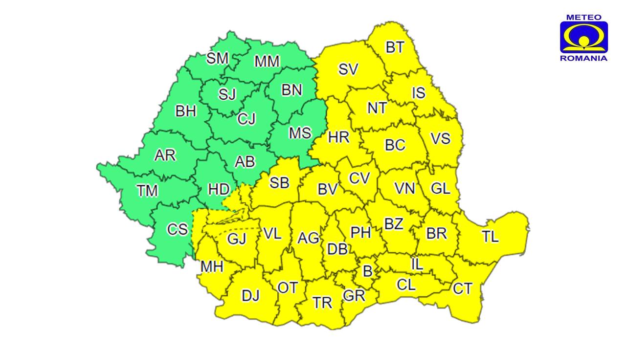 În plus, indicele temperatură-umezeală (ITU) va atinge pragul critic de 80 de unități al disconfortului termic în sudul Olteniei, sudul și estul Munteniei, vestul Dobrogei și în extremitatea sudică a Moldovei.