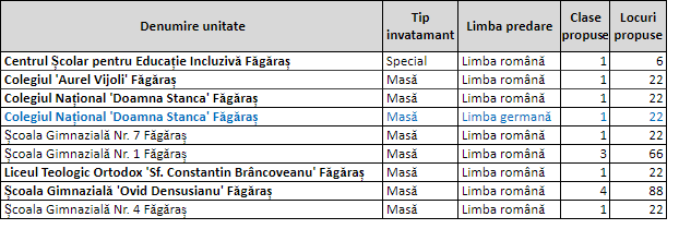 Pentru anul școlar 2022-2023, în județul Brașov sunt disponibile 5.437 de locuri, cu aproape 100 de locuri mai mult decât în anul precedent. 292 dintre acestea sunt în municipiul Făgăraș.