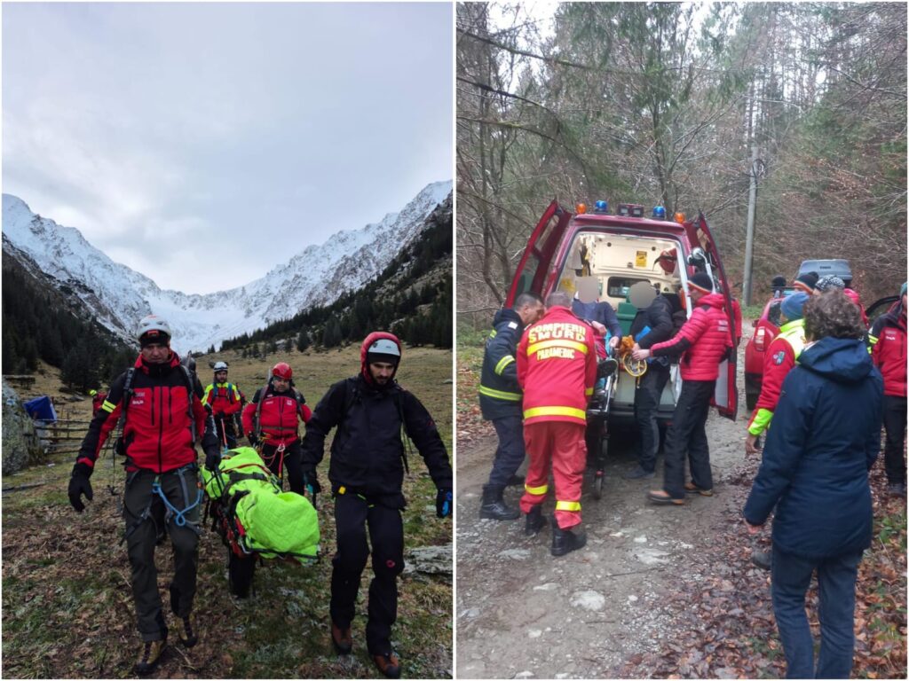 Victima, un bărbat care făcea parte dintr-un grup de trei persoane, a căzut într-o zonă extrem de abruptă și greu accesibilă. Salvatorii montani au ajuns la acesta după un efort susținut, constatând multiple traumatisme la nivelul membrelor inferioare, spatelui și coastelor. La fața locului i-au fost acordate îngrijiri medicale de prim ajutor calificat, bărbatul fiind conștient și cooperant pe parcursul intervenției.