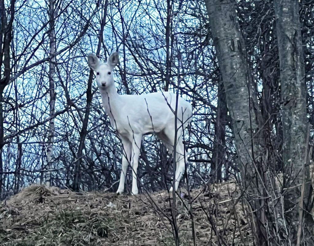 Căprioară albă, foarte rară, fotografiată în zona Bran
