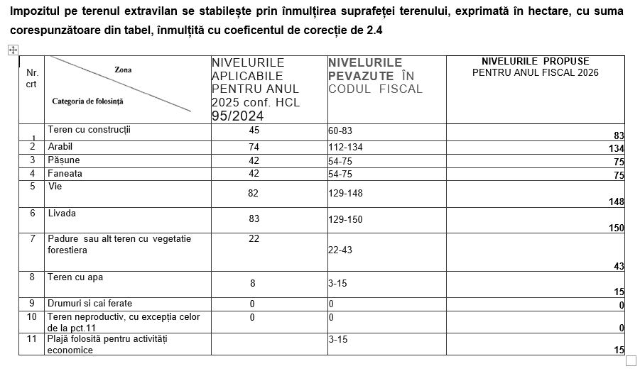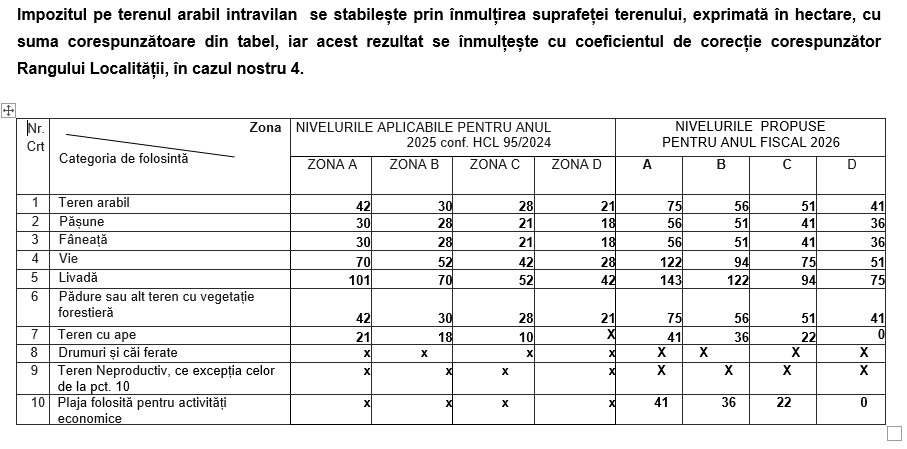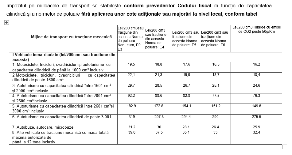 fără aplicarea unor cote adiționale sau majorări locale, conform tabelului anexat.