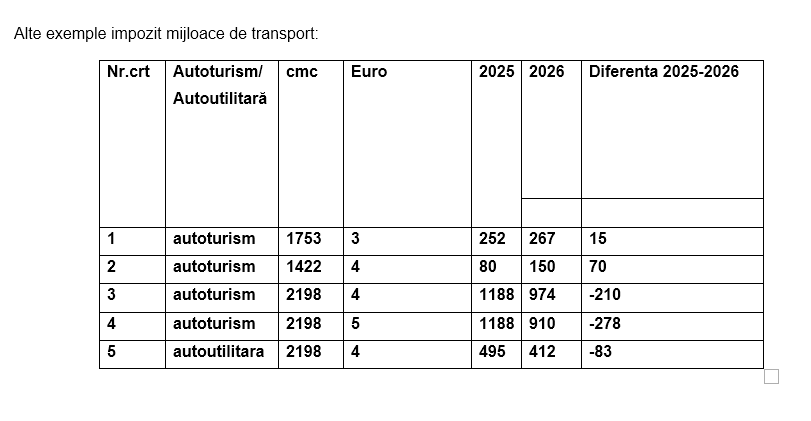 Pentru vehiculele destinate transportului de marfă cu masa totală maximă autorizată mai mare de 12 tone, impozitul se calculează în funcție de cursul de schimb comunicat oficial, respectiv 5,0806 lei/euro, valabil pentru anul 2026.