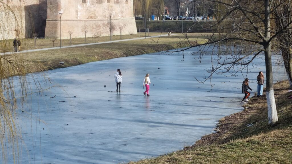 Conducerea Cetății Făgăraș face un apel public adresat părinților și adolescenților, după ce mai mulți copii au fost observați traversând lacul înghețat din jurul obiectivului turistic.