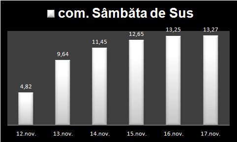 Cea mai gravă situație se înregistrează, în continuare, în Sâmbăta de Sus, unde rata de infectare, cumulată pe ultimele 14 zile, a ajuns la 13,27 la mia de locuitori.