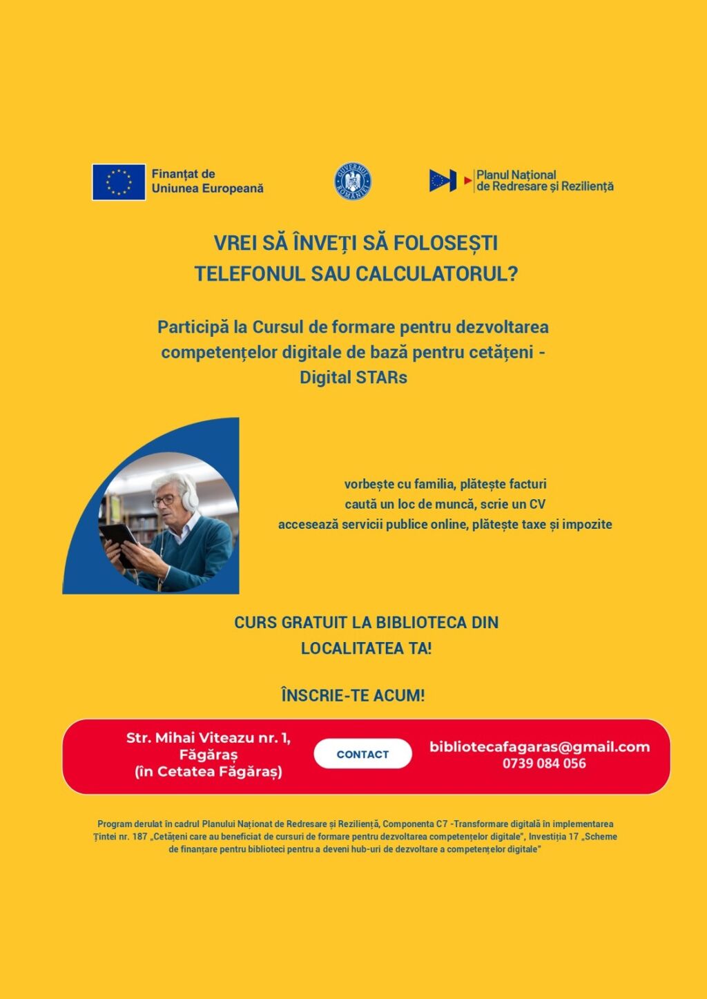 Locuitorii din Făgăraș pot participa gratuit la un curs de formare pentru dezvoltarea competențelor digitale de bază, organizat la Biblioteca Municipală, în cadrul programului Digital STARs.