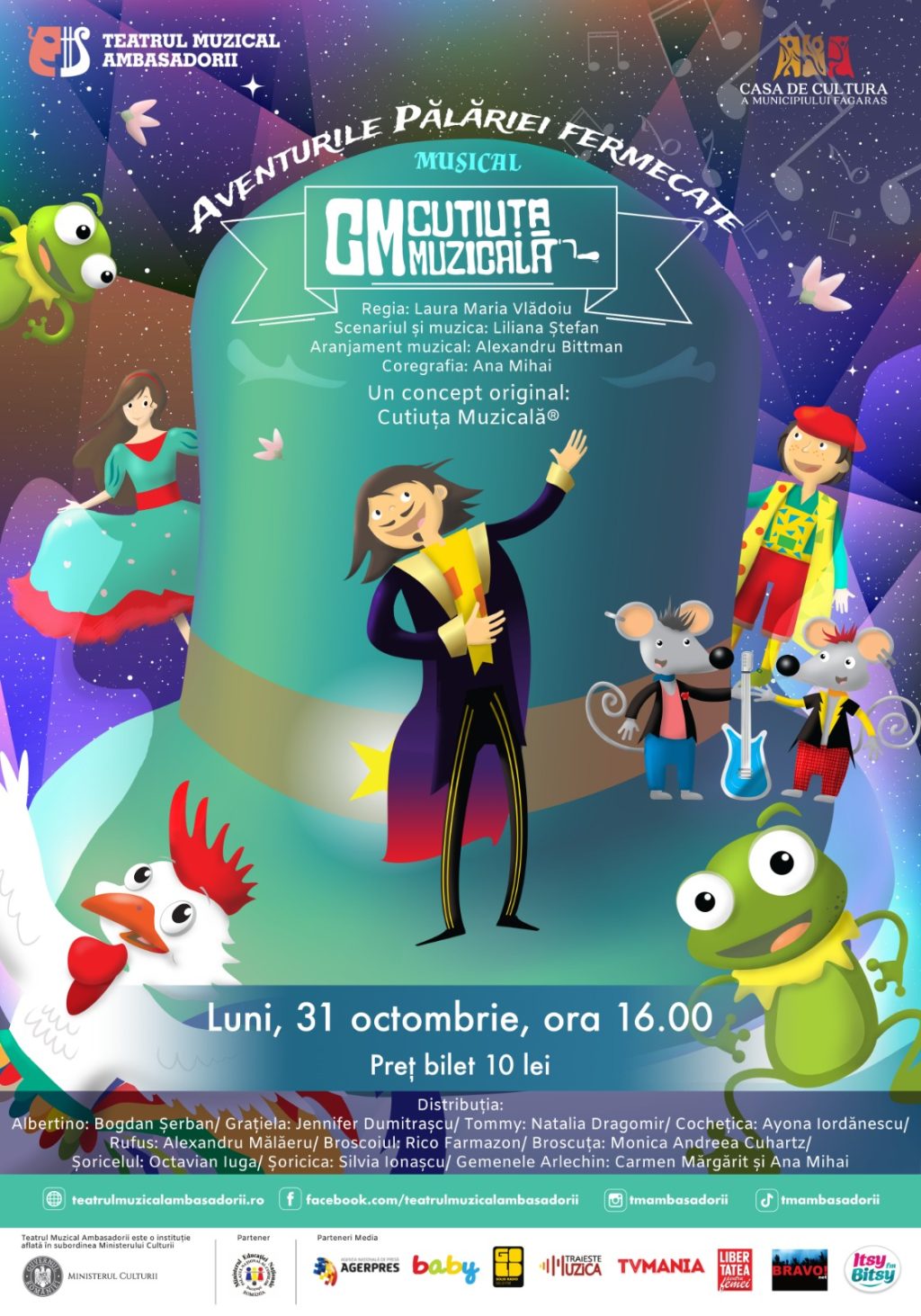 Unul dintre cele mai de succes proiecte muzicale din România dedicate copiilor, Cutiuța Muzicală, aduce „Aventurile Pălăriei Fermecate” pe scena Casei de Cultură Făgăraș în 31 octombrie.