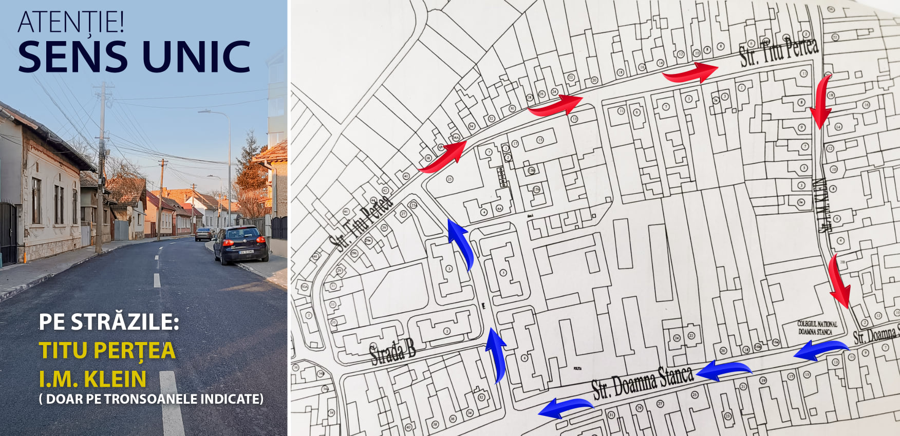 Pe tronsonul de drum de la intersecția str. Titu Perția case și blocuri spre sensul giratoriu din str. Doamna Stanca se va circula în continuare pe ambele sensuri.