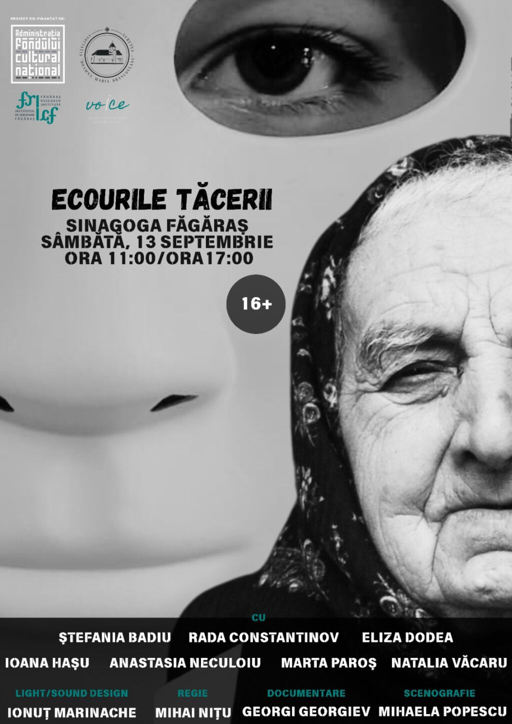 Institutul de Cercetare Făgăraș invită publicul sâmbătă, 13 septembrie, la Sinagoga Făgăraș, unde va fi prezentată instalația de teatru „Ecourile Tăcerii”. Evenimentul va avea loc în două reprize, de la ora 11.00 și ora 17.00, iar intrarea este liberă.