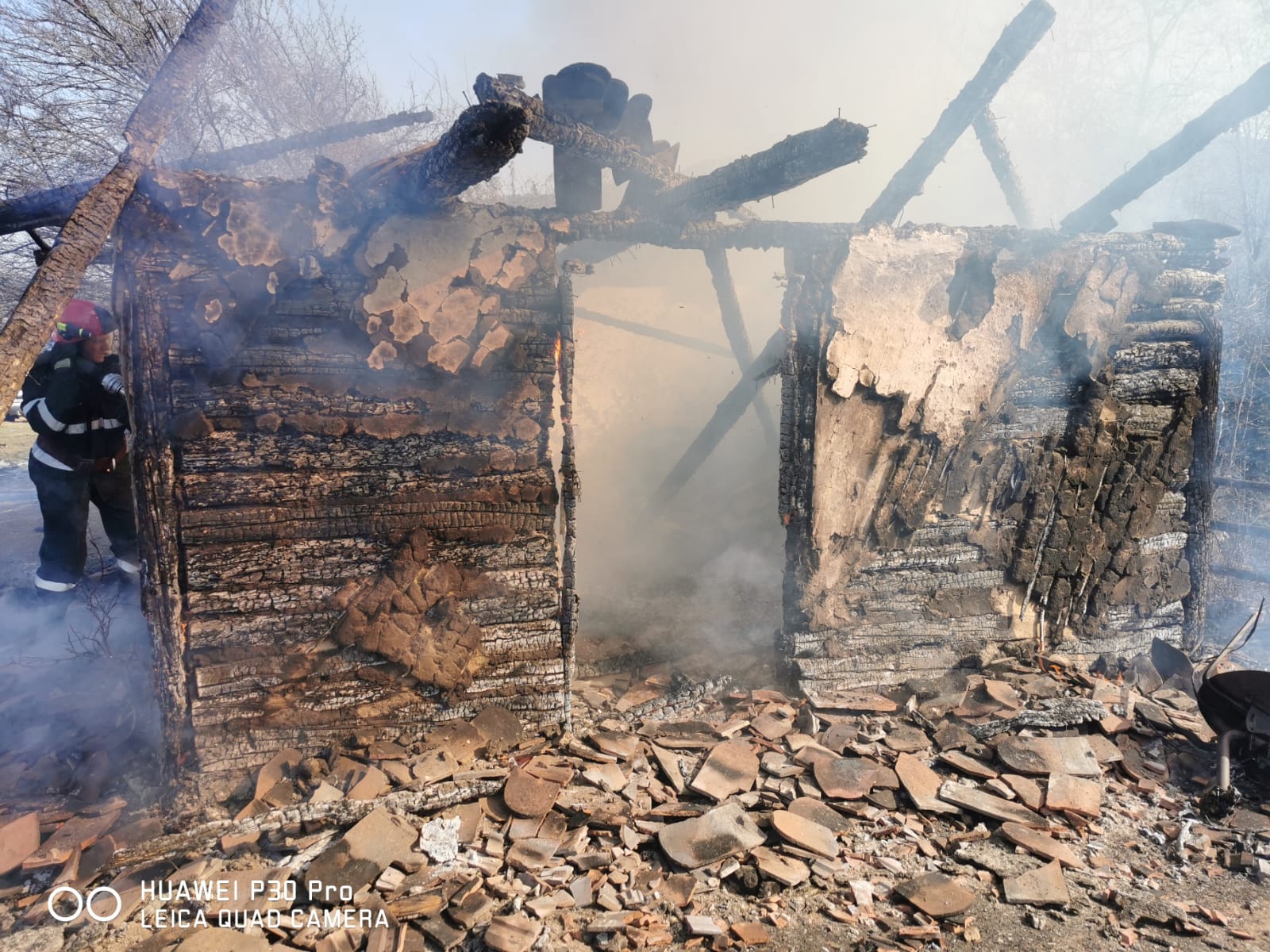 A ars 90 % din casa construită din lemn, pe o suprafață de aproximativ 20 mp.