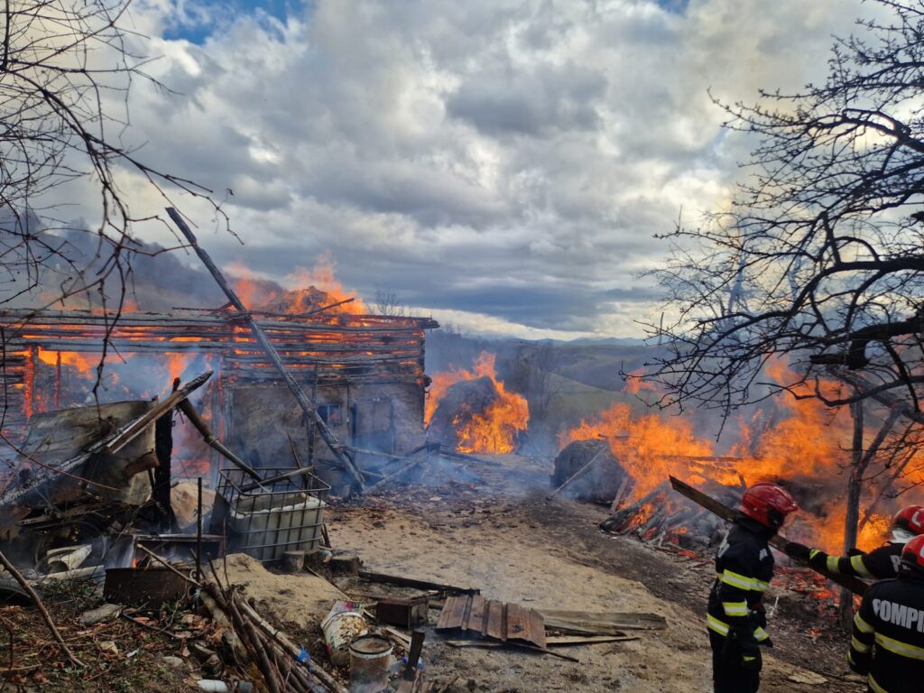Un incendiu de proporții a izbucnit luni, în jurul orei 12.30, la o anexă gospodărească din localitatea Poiana Mărului.