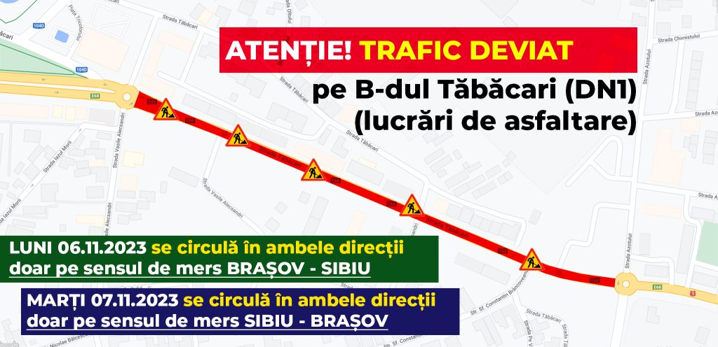 MARȚI 07.11.2023 se va circula în ambele direcții, doar pe sensul de mers SIBIU – BRAȘOV”, anunță Primăria Făgăraș.