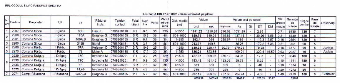 Regia Publică Locală Ocolul Silvic Pădurile Șincii R.A. anunță organizarea licitației la data de 7 iulie 2022,ora 12, la sediul din str. Principală nr. 16, Șercaia, jud. Brașov.