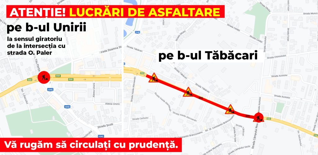 – pe B-dul. Tăbăcari, pe sectorul cuprins între sensul giratoriu de la intersecția cu strada Vasile Alecsandri și sensul giratoriu de la intersecția cu strada Azotului. Se va asfalta inclusiv girația de la intersecția cu strada Azotului.
