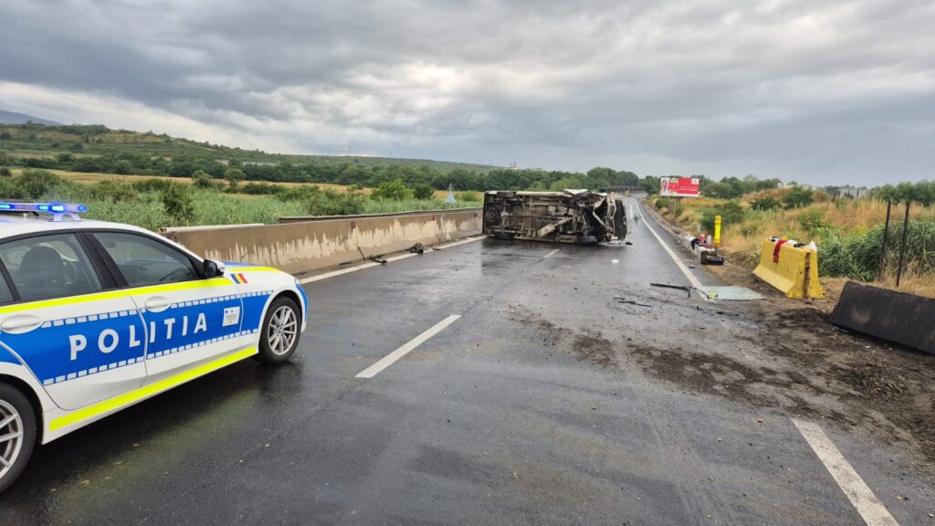Acasă Social Microbuz răsturnat, doi răniți și trafic blocat în urma unui accident pe DN 1, în zona Veștem