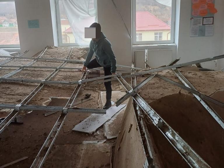Patru elevi sunt răniți ușor după ce tavanul unei clase s-a prăbușit, miercuri, la școala din satul Alămor, comuna Loamneș, județul Sibiu.