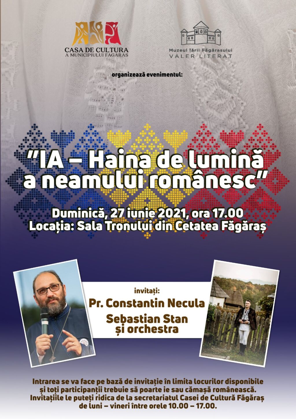 Casa de Cultură Făgăraș și Muzeul Țării Făgărașului „Valer Literat” organizează un evenimentul special dedicat IEI românești, intitulat „IA – Haina de lumină a neamului românesc”.