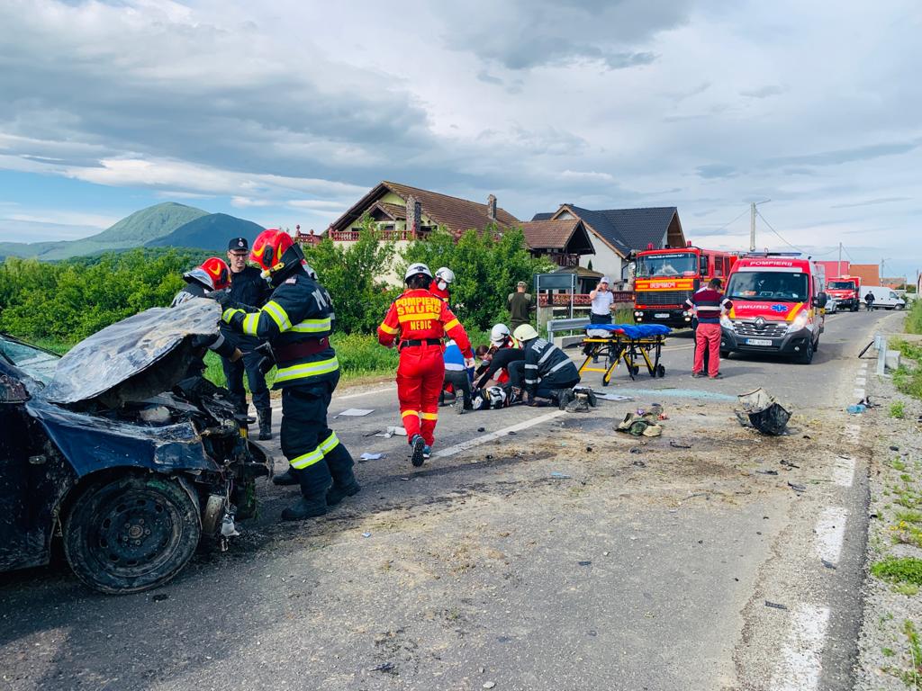 La locul accidentului s-au deplasat o autospecială cu apă și spumă, o autospecială de descarcerare și două echipaje SMURD.