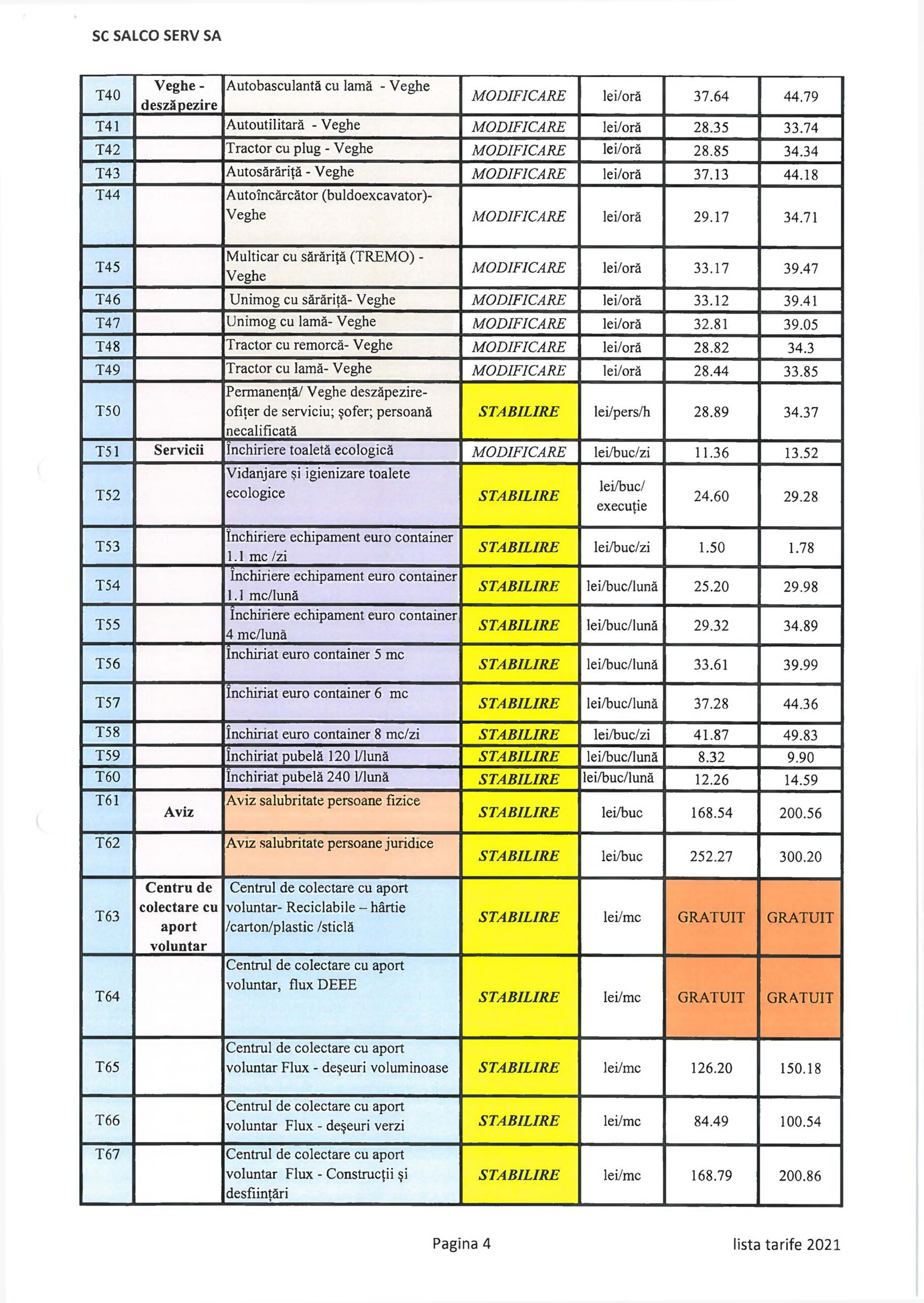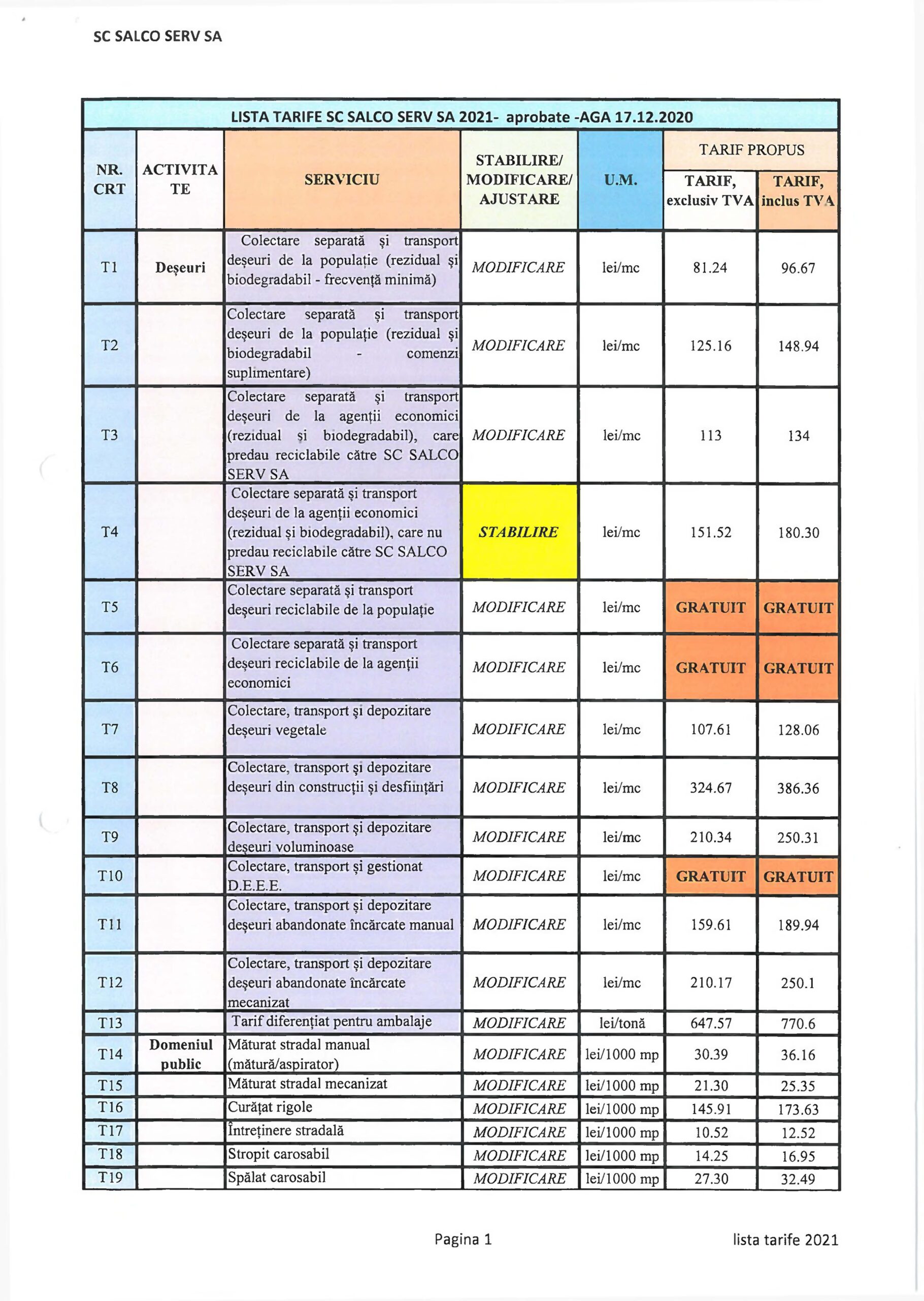 Având în vedere creșterea principalelor elemente care influențează tariful de prestare a serviciului de salubrizare dar și necesitatea dezvoltării serviciului de salubrizare, astfel încât să putem îndeplini obiectivele locale de reducere a cantităților de deșeuri eliminate prin depozitare și atingerea până la data de 31 decembrie 2021 a unui nivel de pregătire pentru reutilizare și reciclare a deșeurilor stabilit prin prerogativele legale”, se arată în cererea Salco către administrația publică locală.