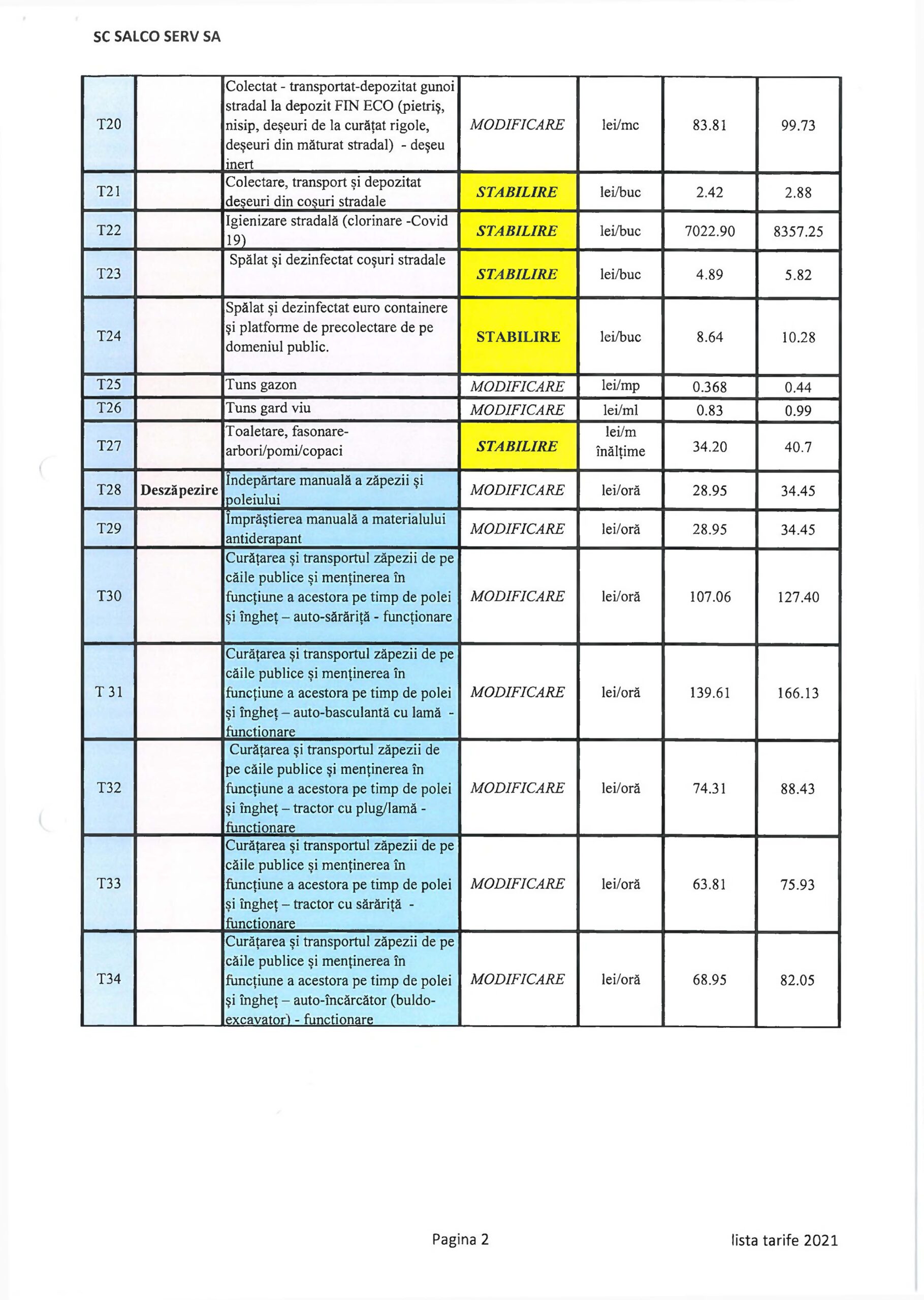 Anul 2021 aduce o posibilă creștere a tarifelor practicate de societatea de salubritate din municipiu. Salco Serv a solicitat deja aprobarea Consiliului Local Făgăraș pentru majorarea prețurilor atât pentru colectarea, transportul și depozitarea deșeurilor de la populație și agenți economici, cât și pentru măturatul stradal, igienizare stradală sau toaletarea spațiilor verzi ori deszăpezire.