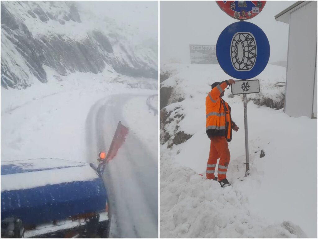 Se circulă în condiții de iarnă pe Transfăgărășan. Drumarii au intervenit cu utilaje de deszăpezire