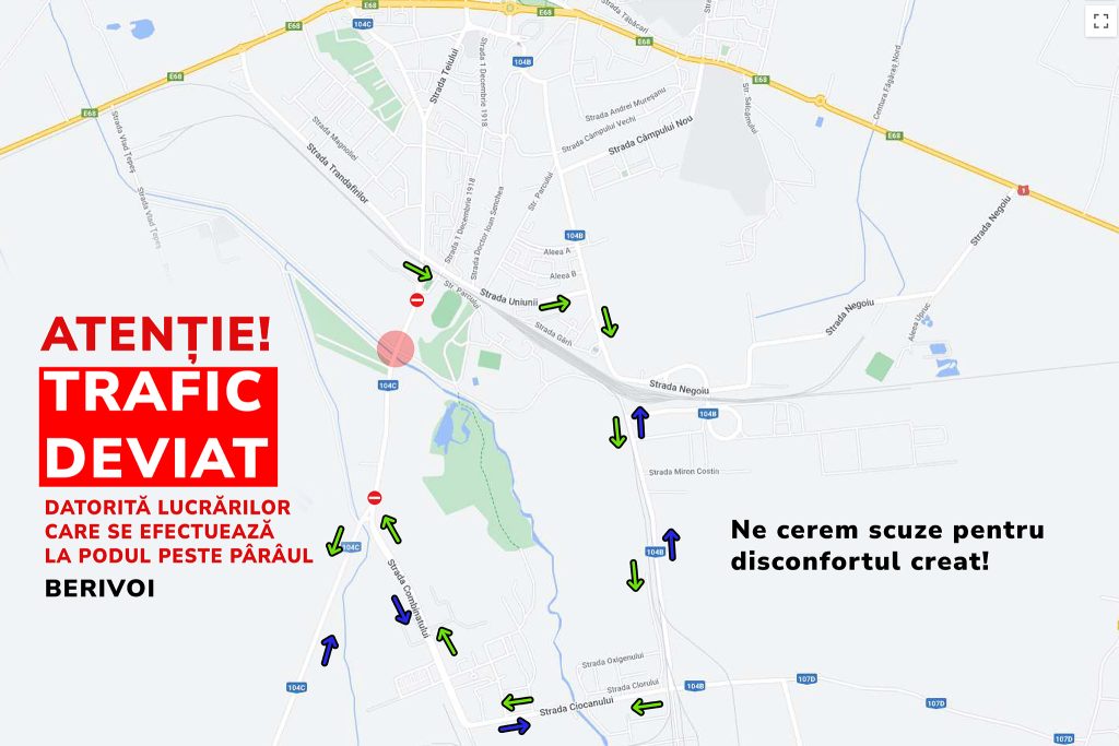 „Pe toată perioada menționată va fi permis accesul riveranilor din ambele direcții până la Pod Berivoi, fără posibilitatea de traversare. Contractul de execuție lucrări face parte din proiectul „Modernizarea coridorului de mobilitate urbanăintegrată în zona industrială a municipiului Făgăraș”. Vă mulțumim pentru înțelegere”, precizează Primăria Făgăraș.