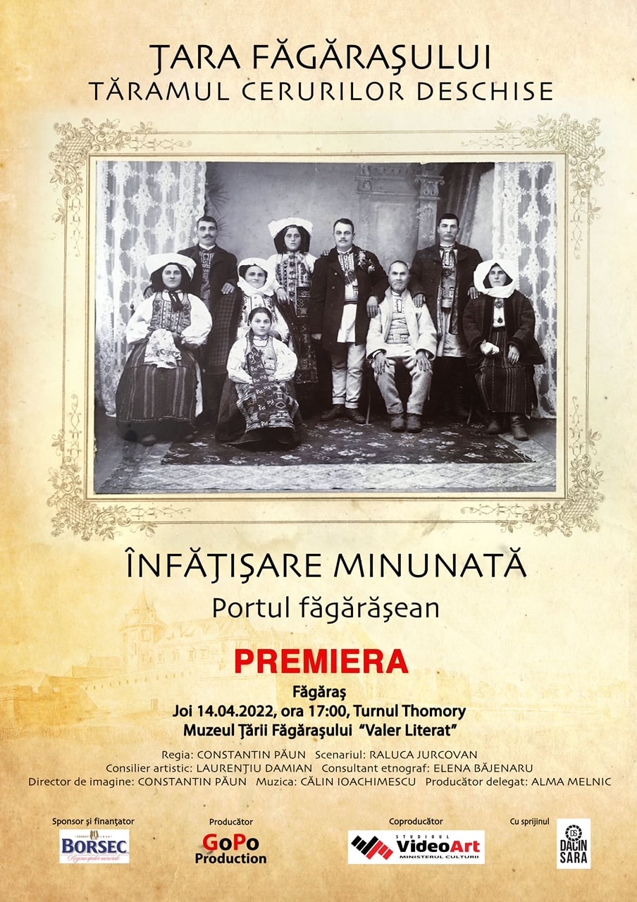 Muzeul Țării Făgărașului „Valer Literat” găzduiește joi, 14 aprilie, premiera filmului documentar „Înfățișarea minunată. Portul făgărășean”.