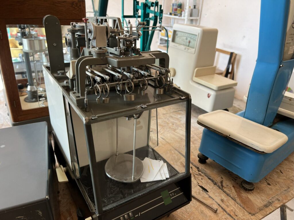 Printre piesele rare se află și un cântar de mare precizie, cu care Teodor face experimente.