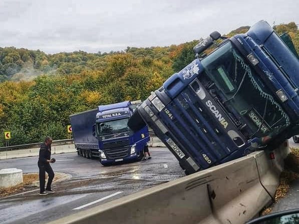 „Un ansamblu de vehicule, care s-a răsturnat pe banda a doua a sensului de mers spre municipiul Brasov.