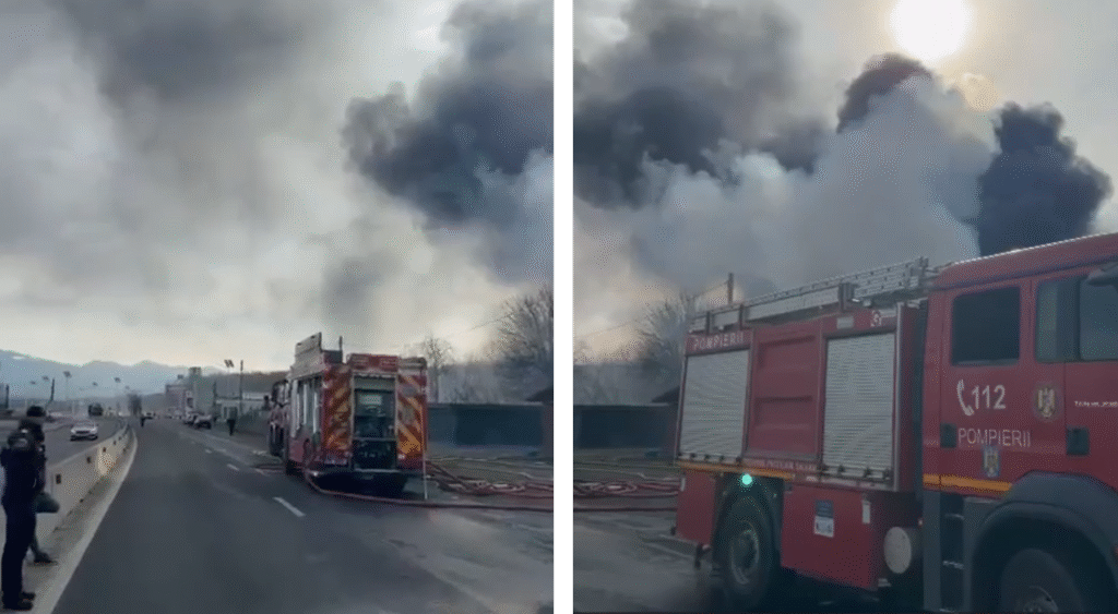 Traficul rutier a fost blocat vineri, 13 februarie, pe DN1 în zona localității Veștem, pe sensul de mers Sibiu-Brașov, din cauza unui incendiu care a izbucnit la un depozit de anvelope.
