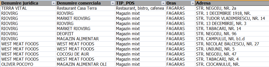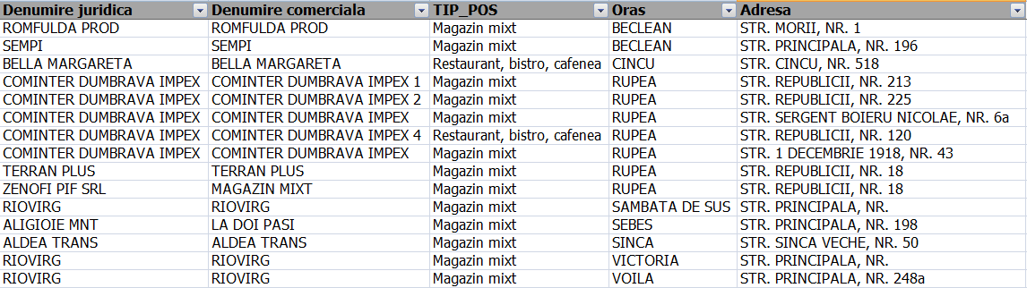 În Țara Făgărașului și în Rupea, cardurile cu ajutorul guvernamental pot fi folosite la următorii comercianți:
